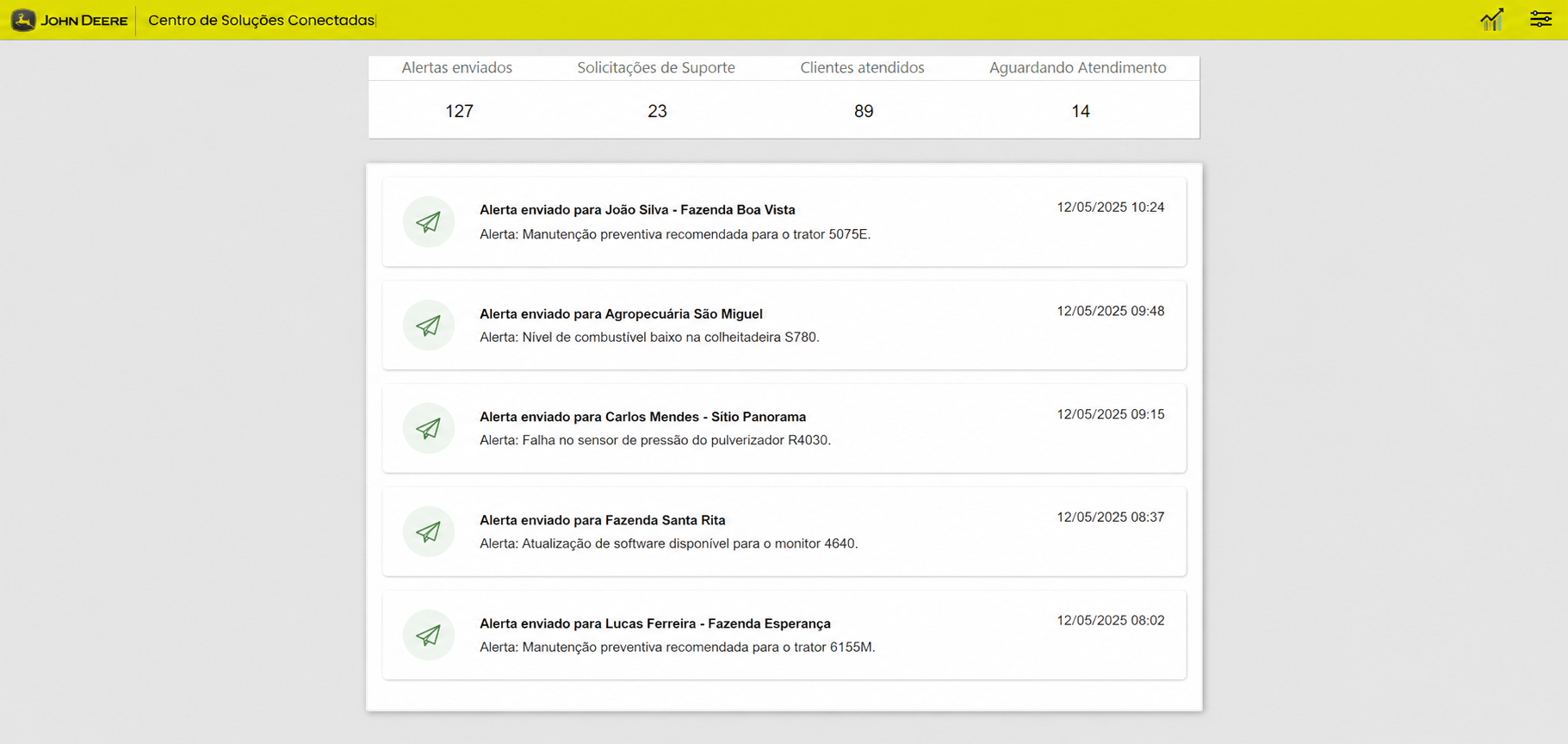 Dashboard com atualizações automáticas.